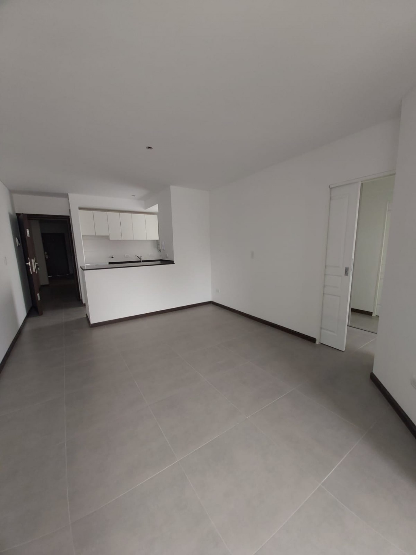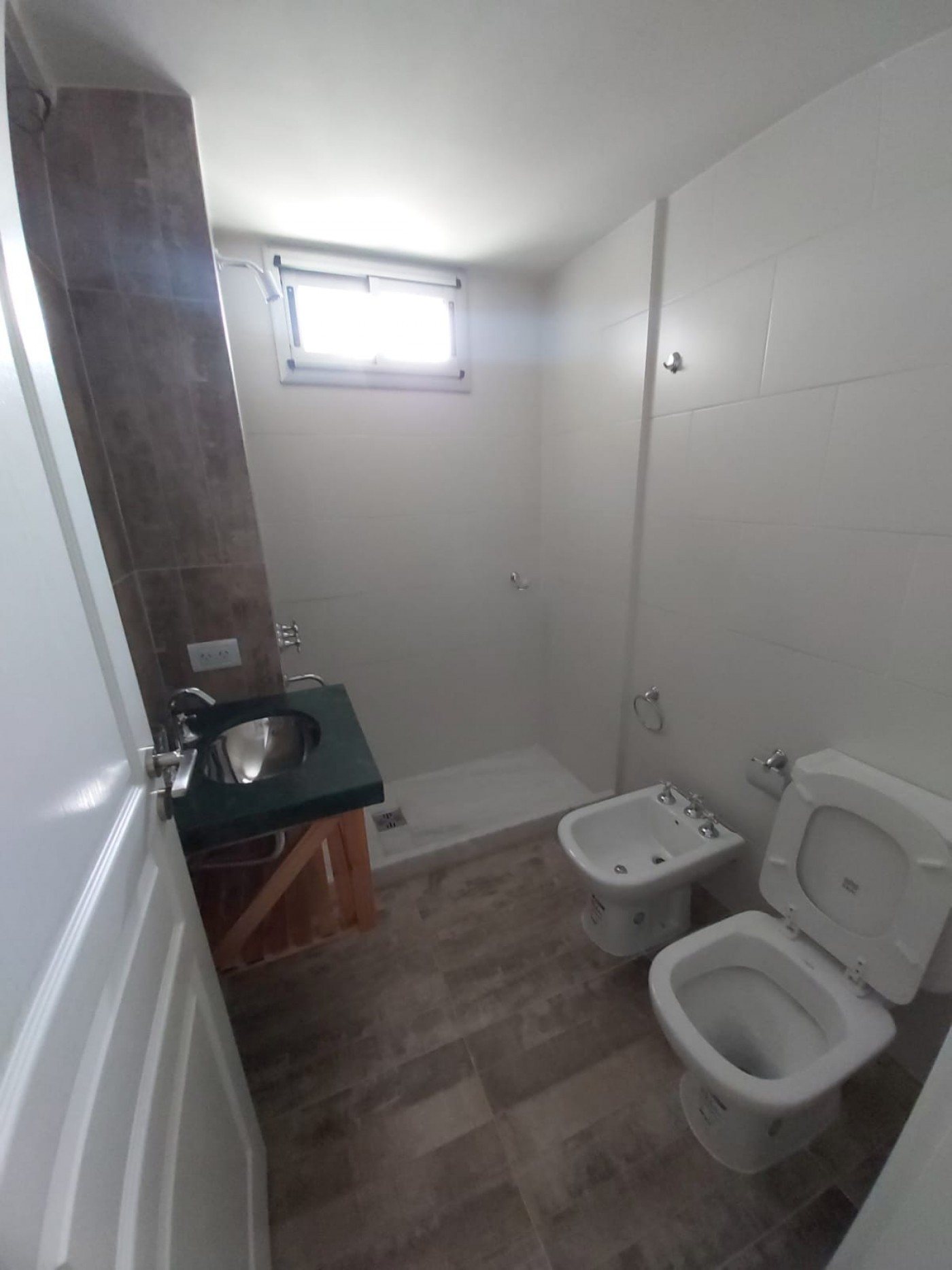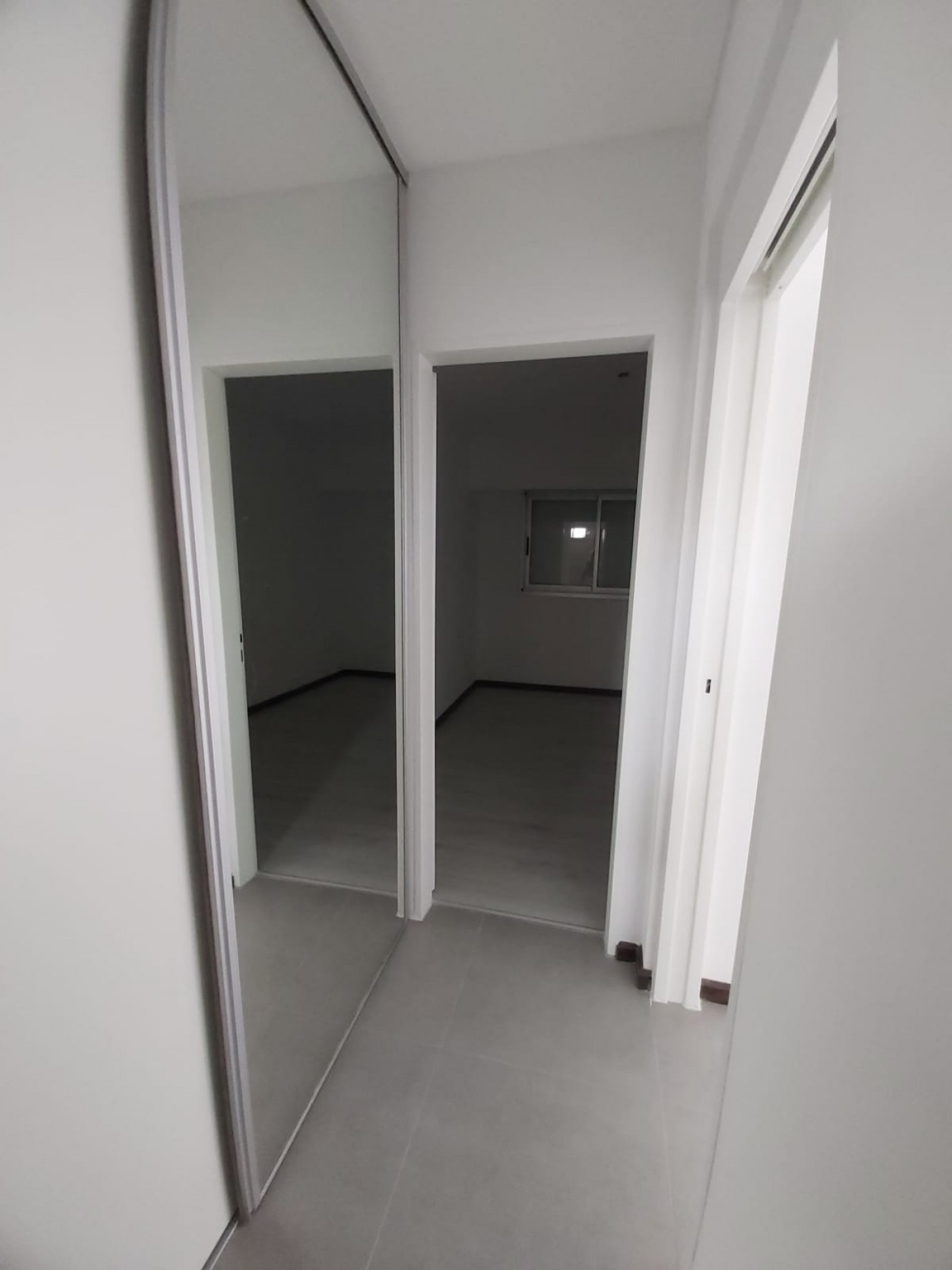 Se ingresa a la cocina, la cual está separada del resto del ambiente por una hermosa barra de material y mármol. Amplio con salida al balcón, muy luminoso, excelente ventilación. Cocina con luz natural, alacenas, bajo-mesadas modernas con gran espacio de almacenamiento. Espacio para lavarropas. 1 Dormitorio, se une al baño mediante un pasillo el cual tiene el placar (puerta completa con espejo).