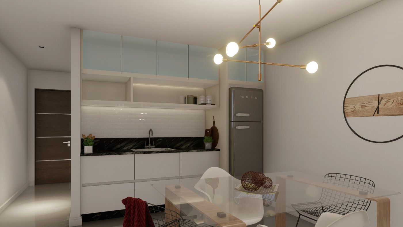 Pisos de porcelanato primera calidad en living, cocina y comedor.